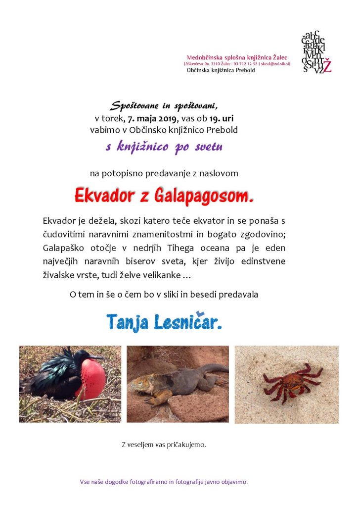 KNJIŽNICA PREBOLD: Predavanje Ekvador z Galapagosom