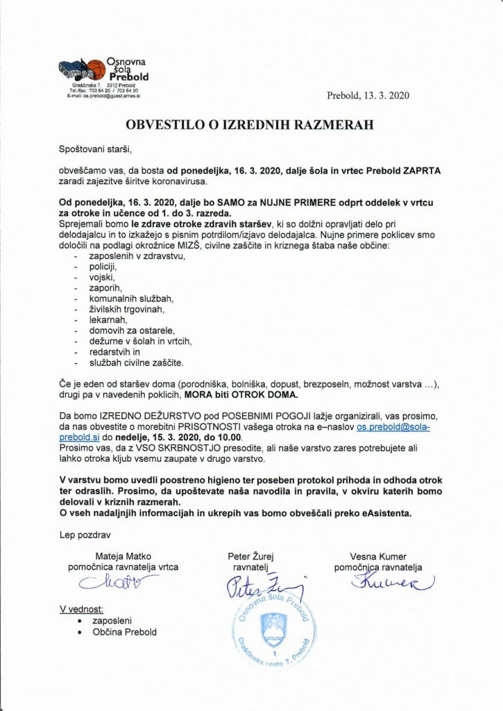 V prilogi je obvestilo s podrobnejšimi napotki in pojasnili.